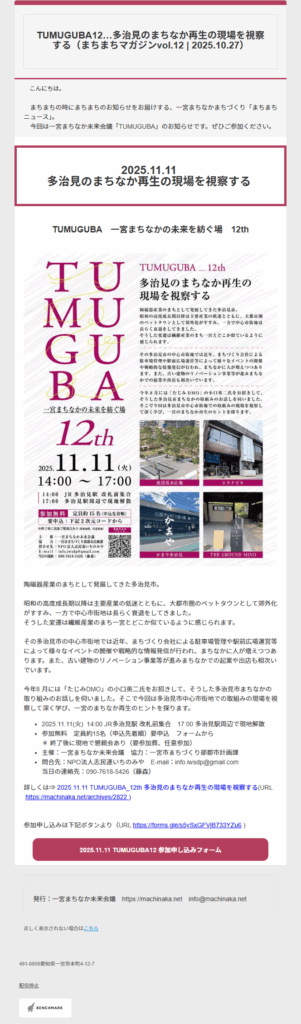 まちまちの時にまちまちのお知らせをお届けする、一宮まちなかまちづくり「まちまちニュース」。